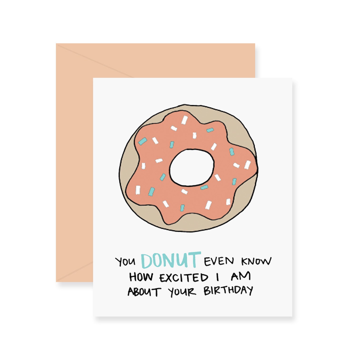 One hand-sketched "Donut Birthday" greeting card, printed on premium 100% recycled paper, with coordinating envelope.