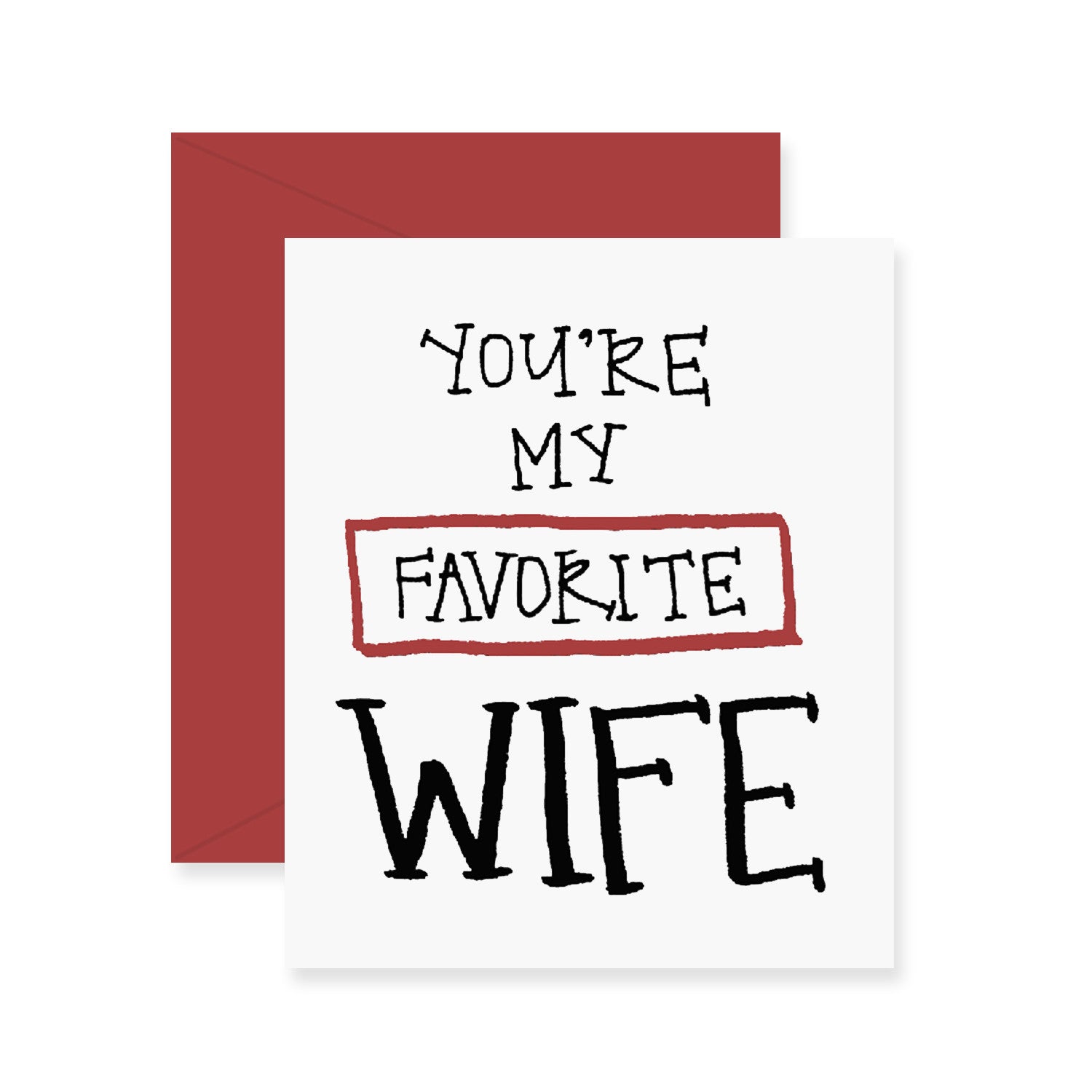 One hand-sketched "you're my favorite wife" greeting card, printed on premium 100% recycled paper, with coordinating envelope.