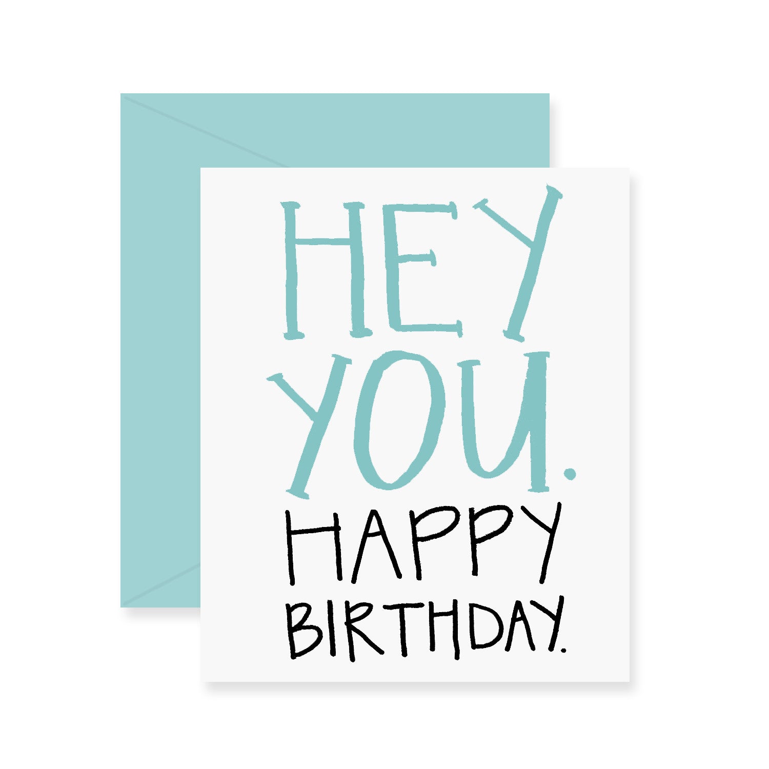 One hand-sketched "Hey You" birthday greeting card, printed on premium 100% recycled paper, with coordinating envelope.