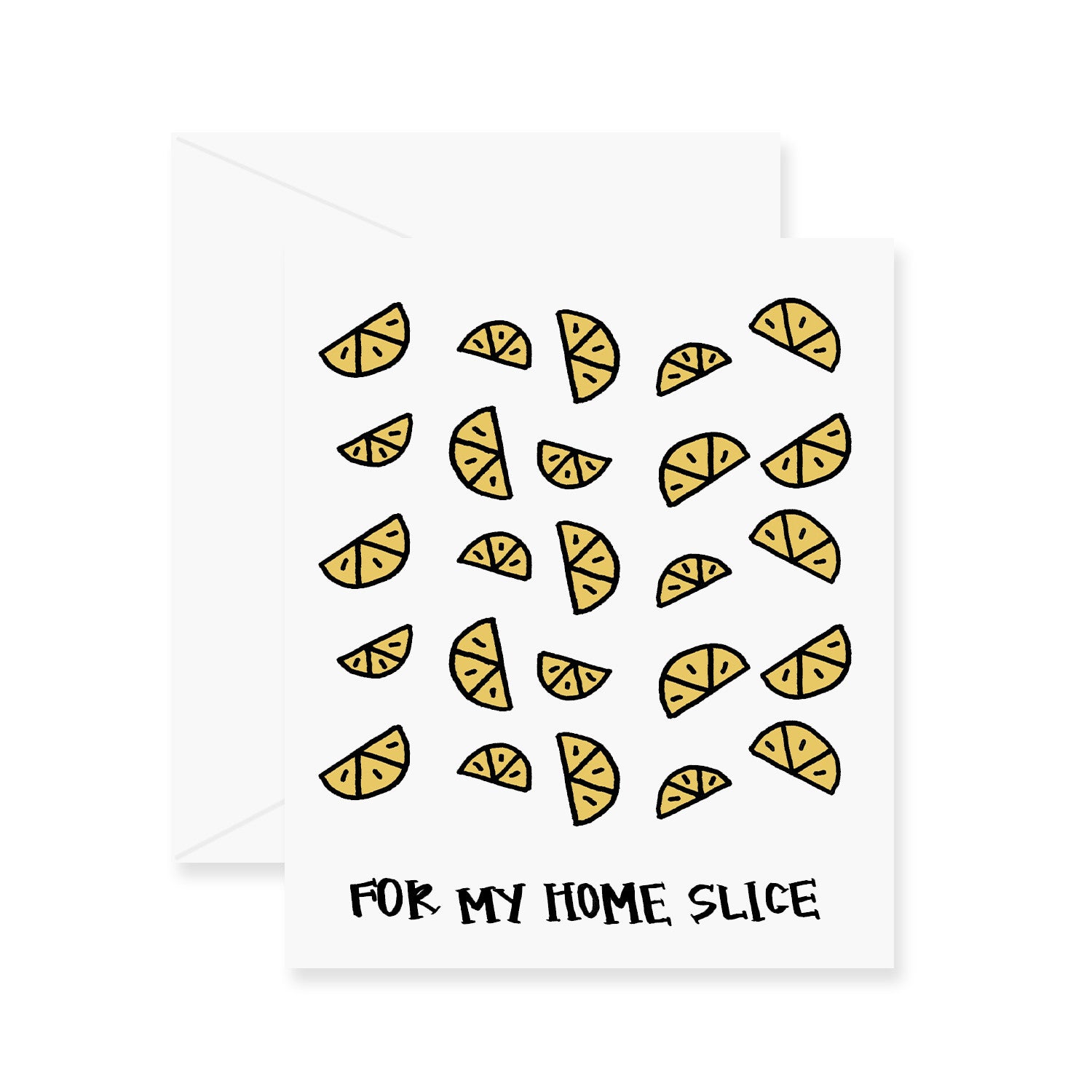 One hand-sketched "for my home slice" greeting card, printed on premium 100% recycled paper, with coordinating envelope.
