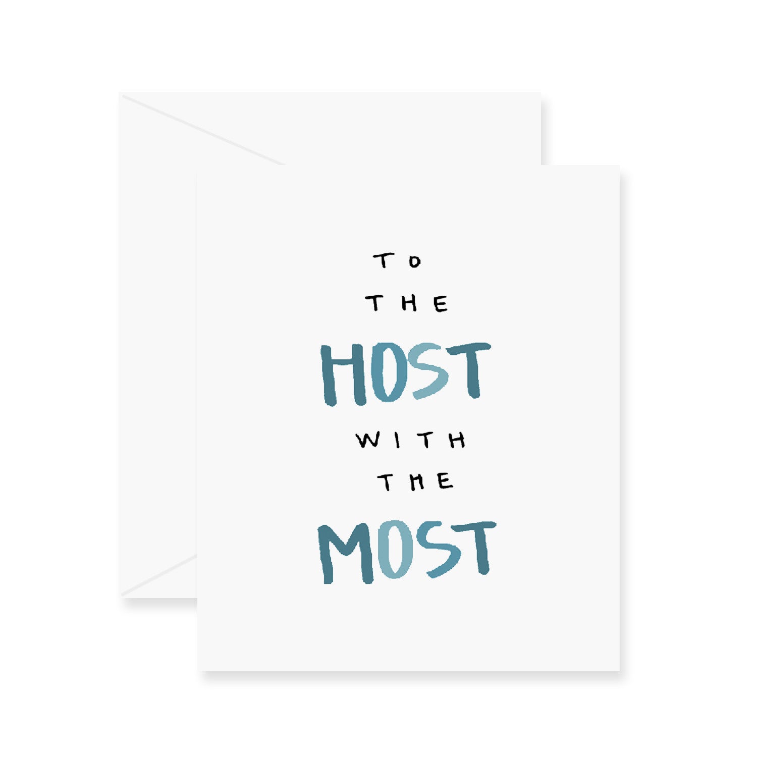 One hand-sketched "to the host with the most" greeting card, printed on premium 100% recycled paper, with coordinating envelope.