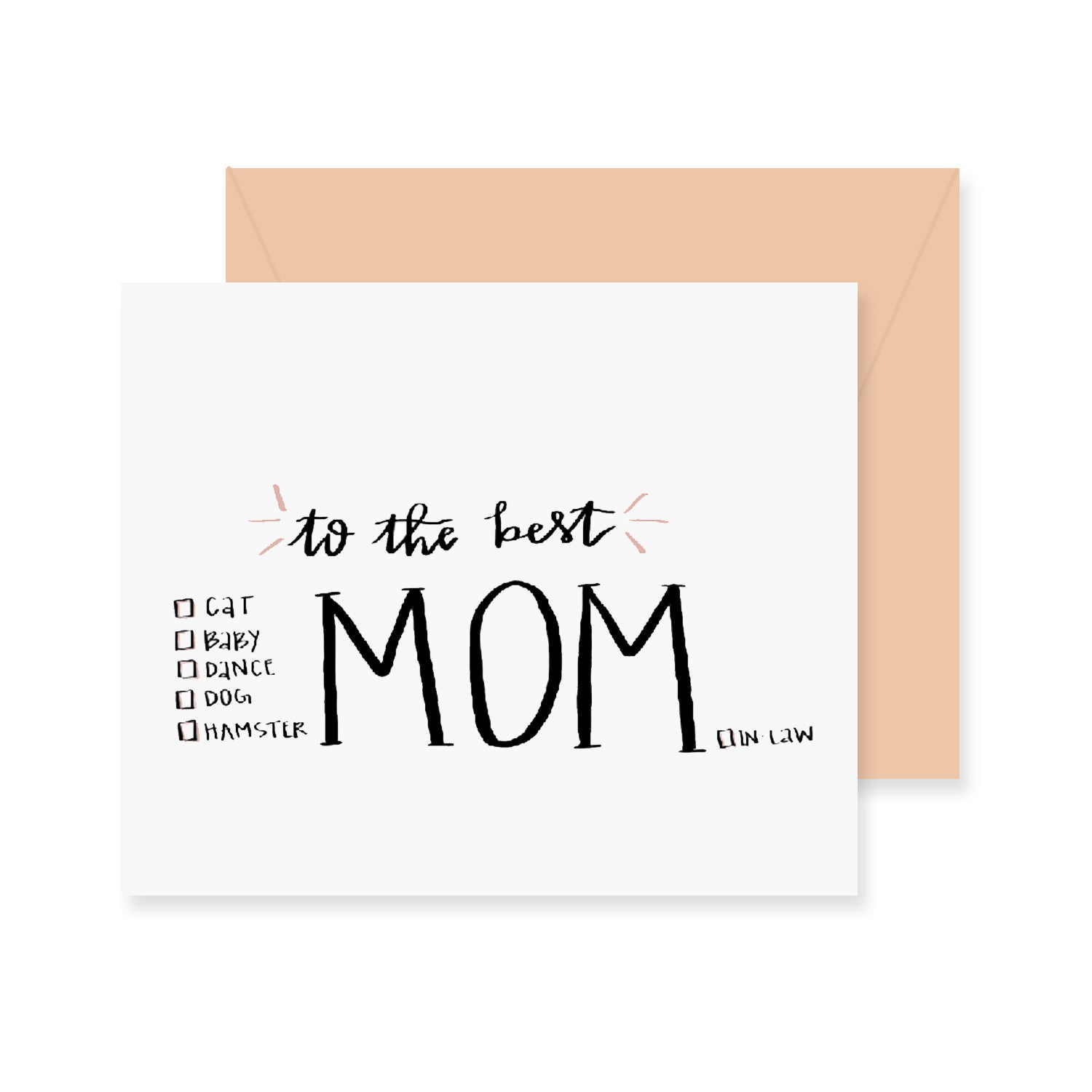 One hand-sketched "mom checklist" greeting card, printed on premium 100% recycled paper, with coordinating envelope.