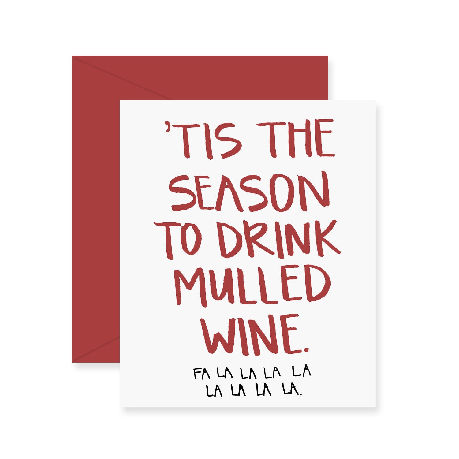 One hand-sketched "tis the season to drink mulled wine... fa la la la la la la la la" greeting card, printed on premium 100% recycled paper, with coordinating envelope.