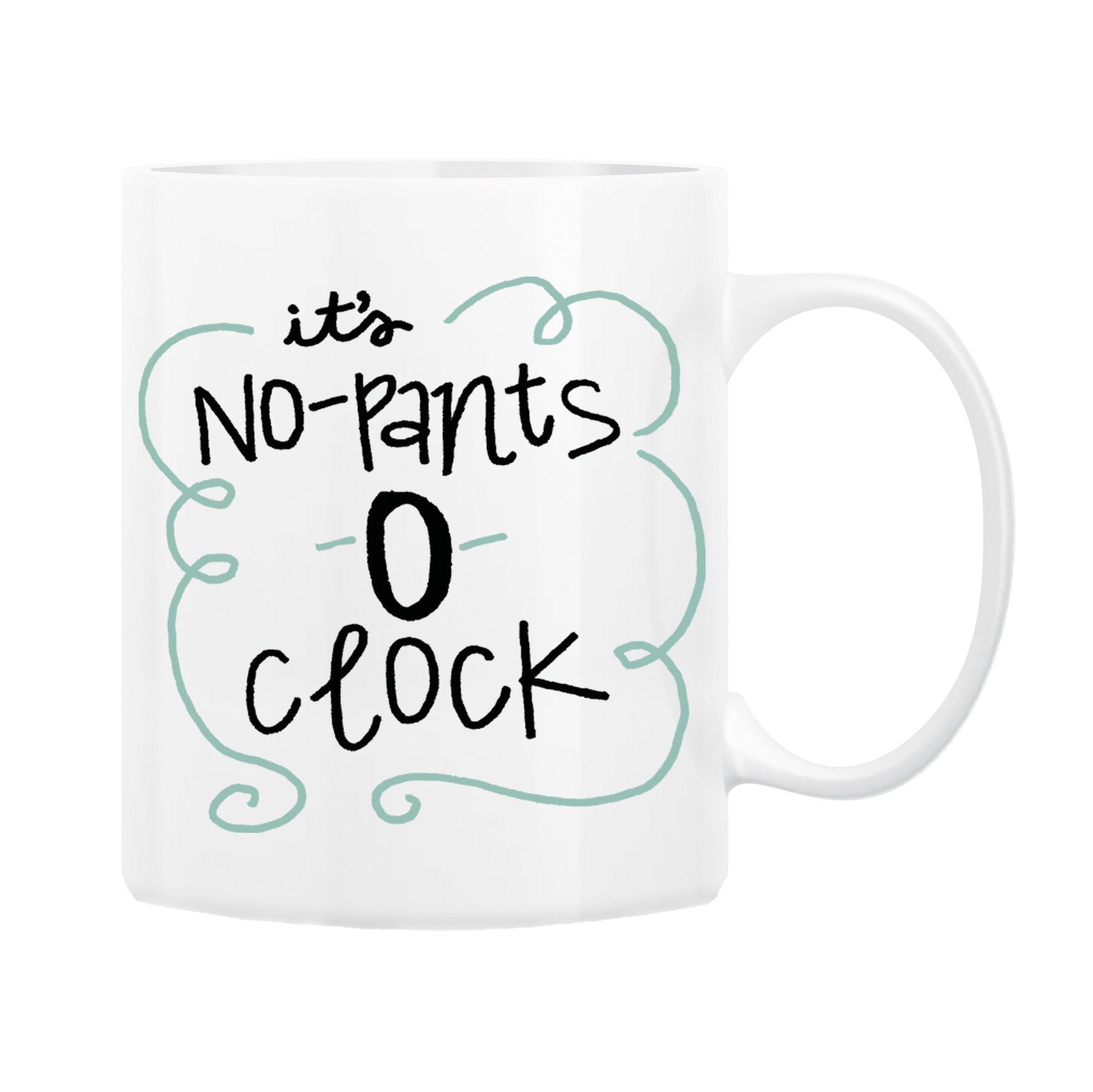 One hand-sketched "It's No-Pants-O-Clock" coffee mug. Design is printed on both sides of the mug (lefties, rejoice!).