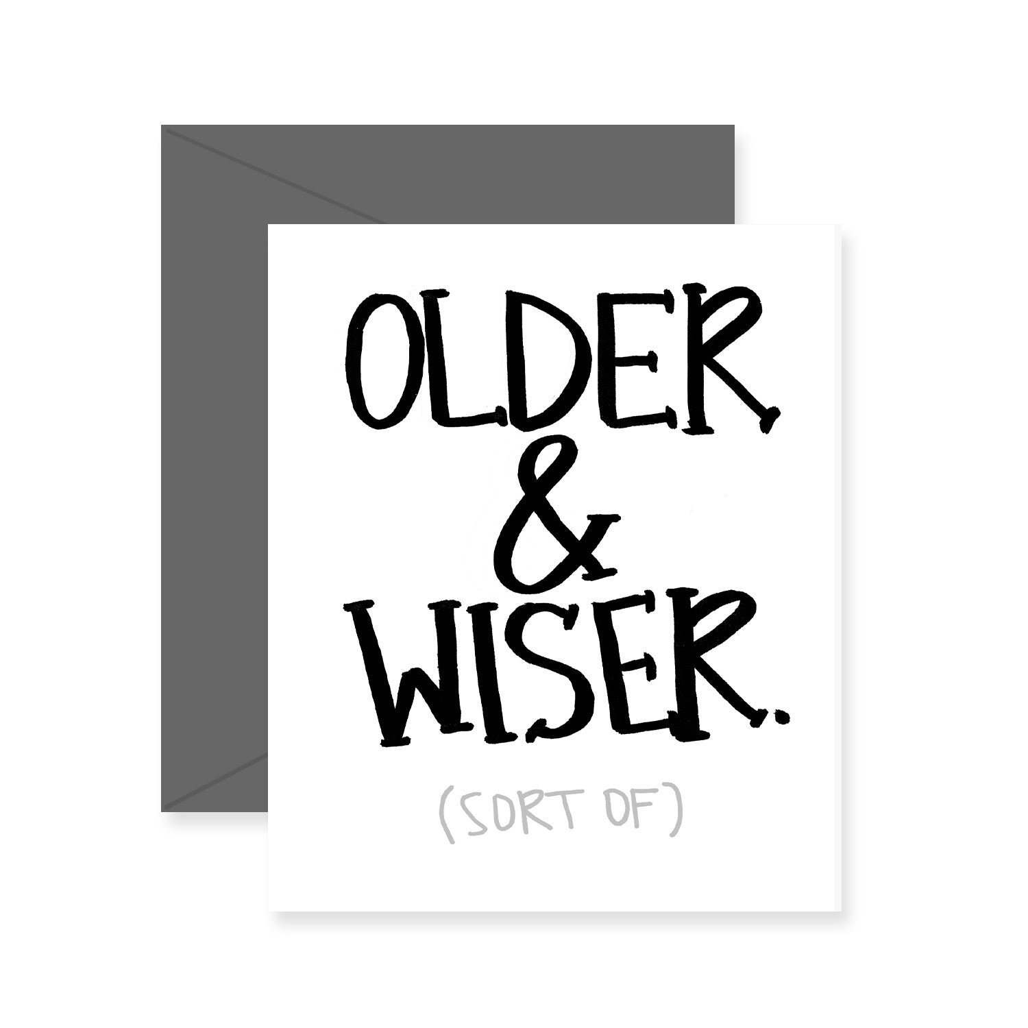 One hand-sketched "Older & Wiser" greeting card, printed on premium 100% recycled paper, with coordinating envelope.