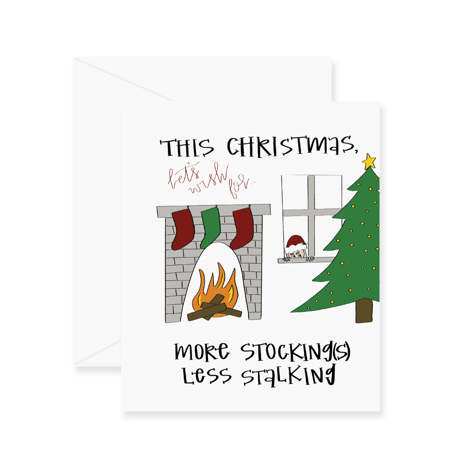 One hand-sketched "Stalking/Stocking" holiday greeting card, printed on premium 100% recycled paper, with coordinating envelope.