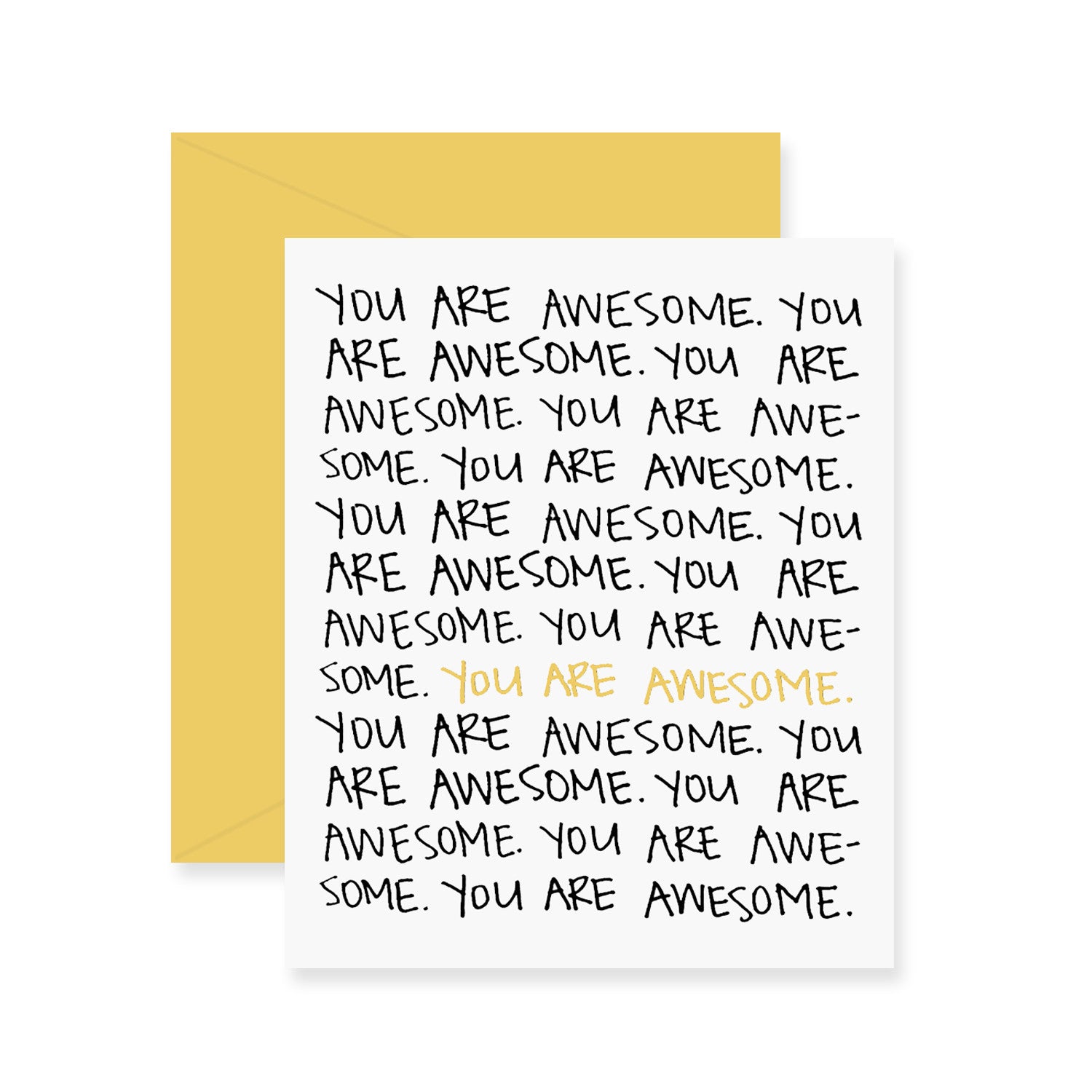 One hand-sketched "you are awesome" greeting card, printed on premium 100% recycled paper, with coordinating envelope.